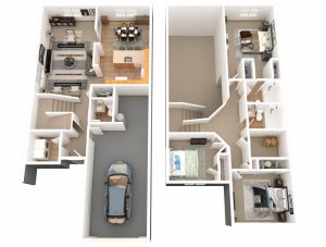 Vaulted ceilings and loads of storage! The large living room is adjacent to the kitchen/family/dining area. The U shaped kitchen maximizes counter space and has an extended countertop for bar seating/serving into the family and dining area. A half bath, utility room, and hall closet complete the main level. Upstairs, you'll find a large master bedroom with two closets and a private bath. Two secondary bedrooms share the full hall bath. An interior bulk storage area and exterior storage in the single-car attached garage take care of your storage needs.