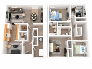 Large gathering space and storage galore! The efficient galley kitchen features a separate family room on one end and the huge living/dining area on the opposite end. A big utility room, hall closet, and two interior bulk storage areas complete the main level. Upstairs, the large master suite features a big closet and a private bath. The three secondary bedrooms share the full hall bath.